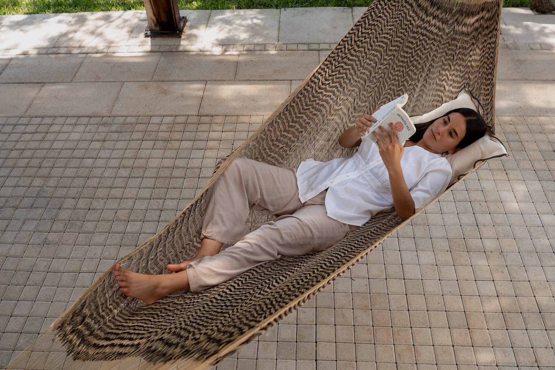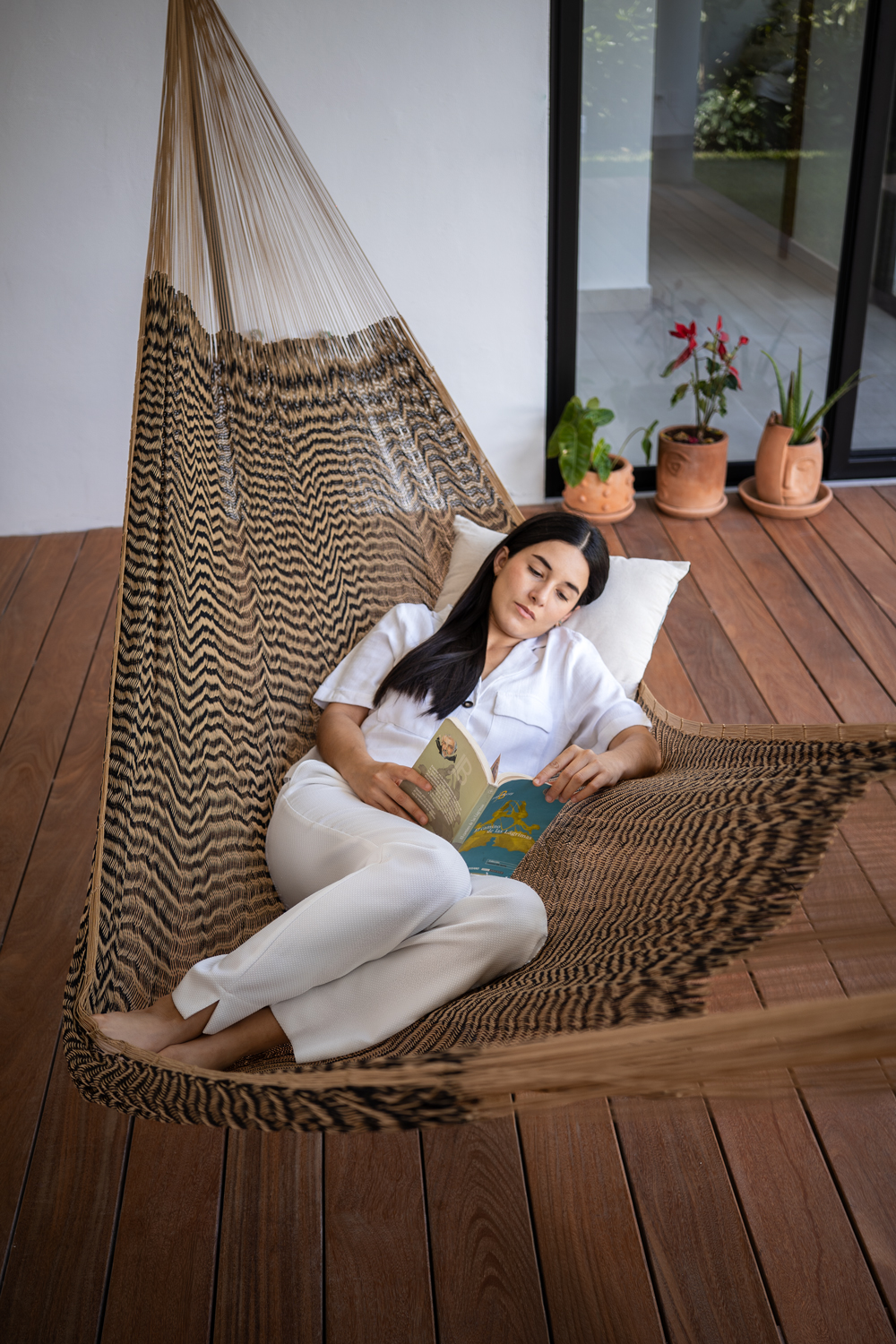 La hamaca más resistente de todas. Excelente para colocarse en exteriores y disfrutar del clima. El color arena es perfecto para todo, ya que es un color neutro que denota elegancia y serenidad.