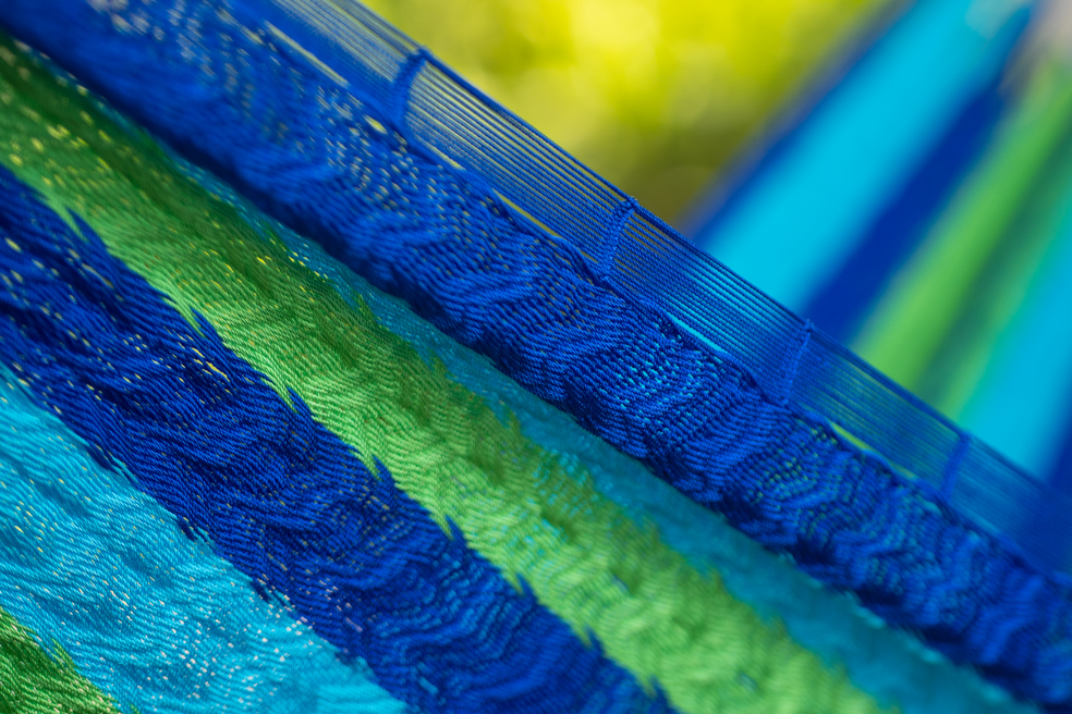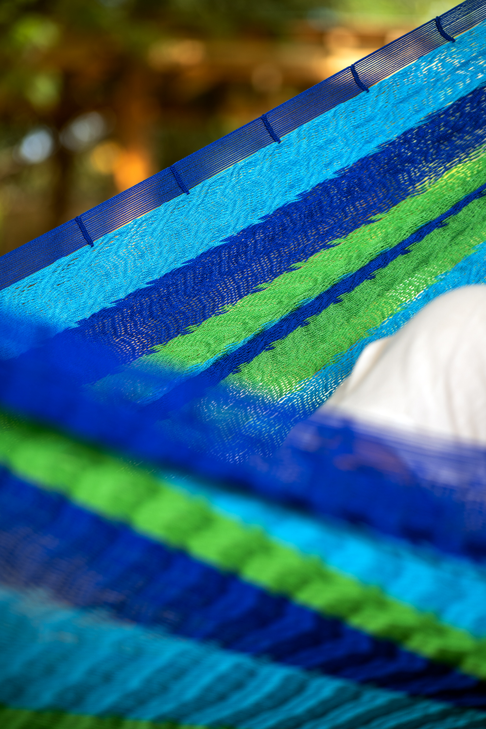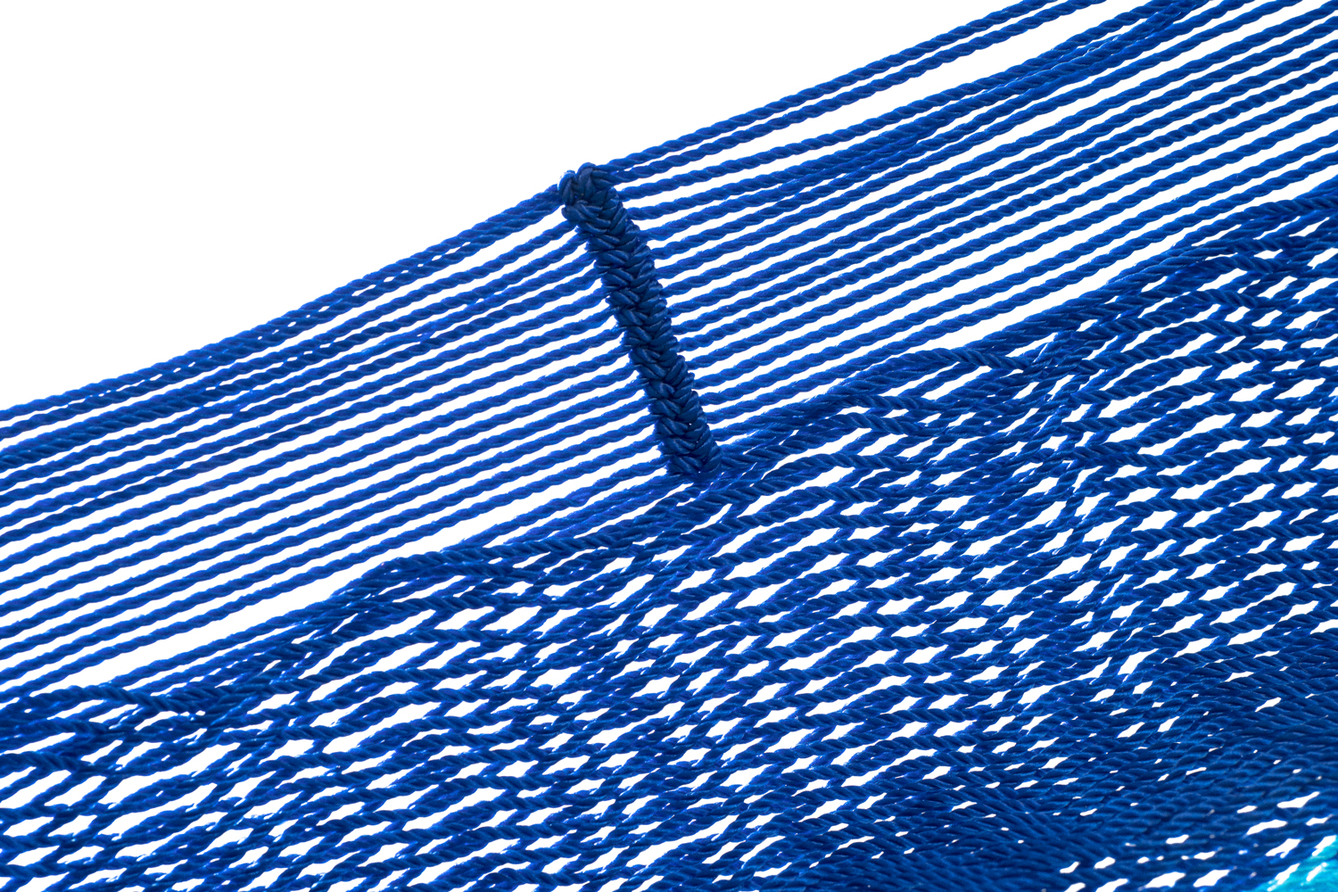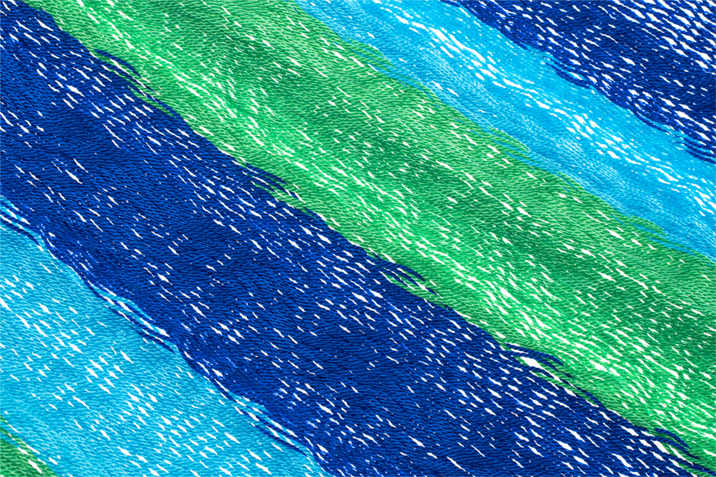Disfruta de momentos de descanso y frescura con la hamaca EXTERIA OCEÁNICA, tejida 100% a mano en Super Nylon por artesanas mayas de la península de Yucatán. Confortable y resistente, ofrece versatilidad y comodidad, ideal para descansar y disfrutar de tus momentos de relax en cualquier espacio.